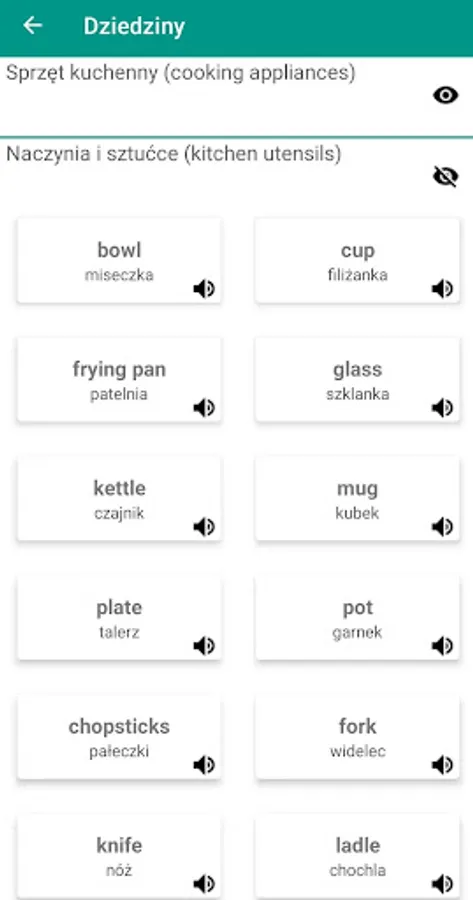 - managing the way of learning the displayed words, flashcards (quiz mode, written mode),
