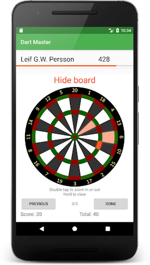 With Dart Master, you can invite your friends to an exciting game of dart and keep score by simply tapping on an interactive dartboard wherever your real life darts hit and the app will do the rest. Dart Master will even give you suggestions on how to win in the best possible way! No need to do any annoying calculations in your head! Just relax and enjoy the game!
