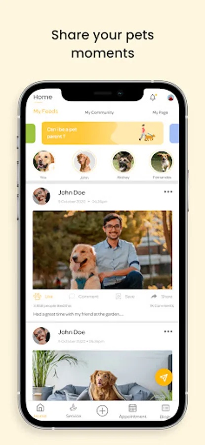 Pet-Community: Users can now form their own community exclusively with Pet-Parents and share the useful information amongst them for effective Pet-Care. This would include creating posts, liking, sharing and subscribing pages.