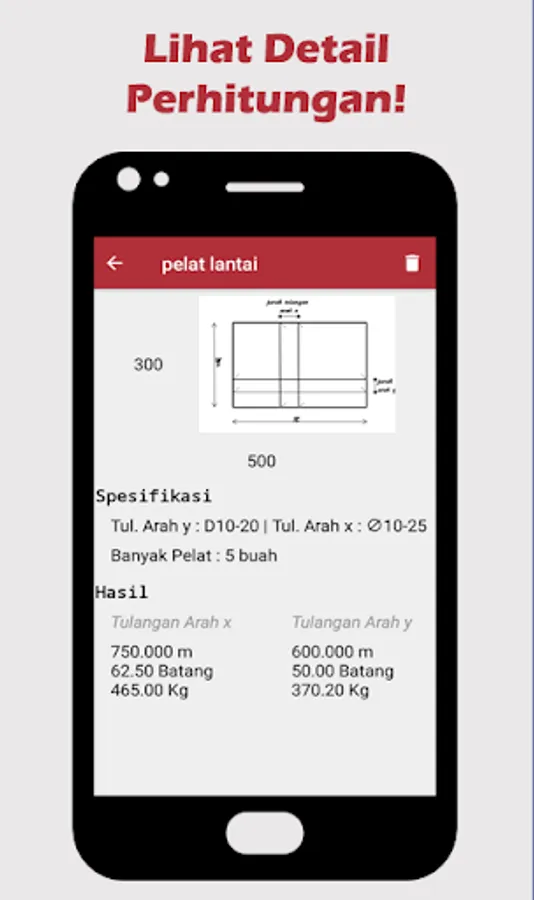 Additional iron weight calculation results with additional parameter types of iron and steel diameter.