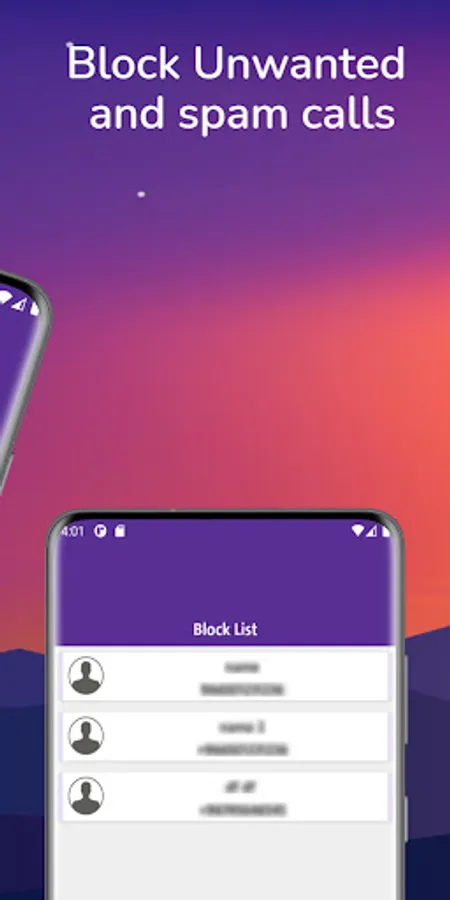 • Read Call Log ( to read caller phone number when unknown incoming calls, display list of unknown numbers from the call log and to find if the caller phone exits or not in the spam or block list to warn the user )