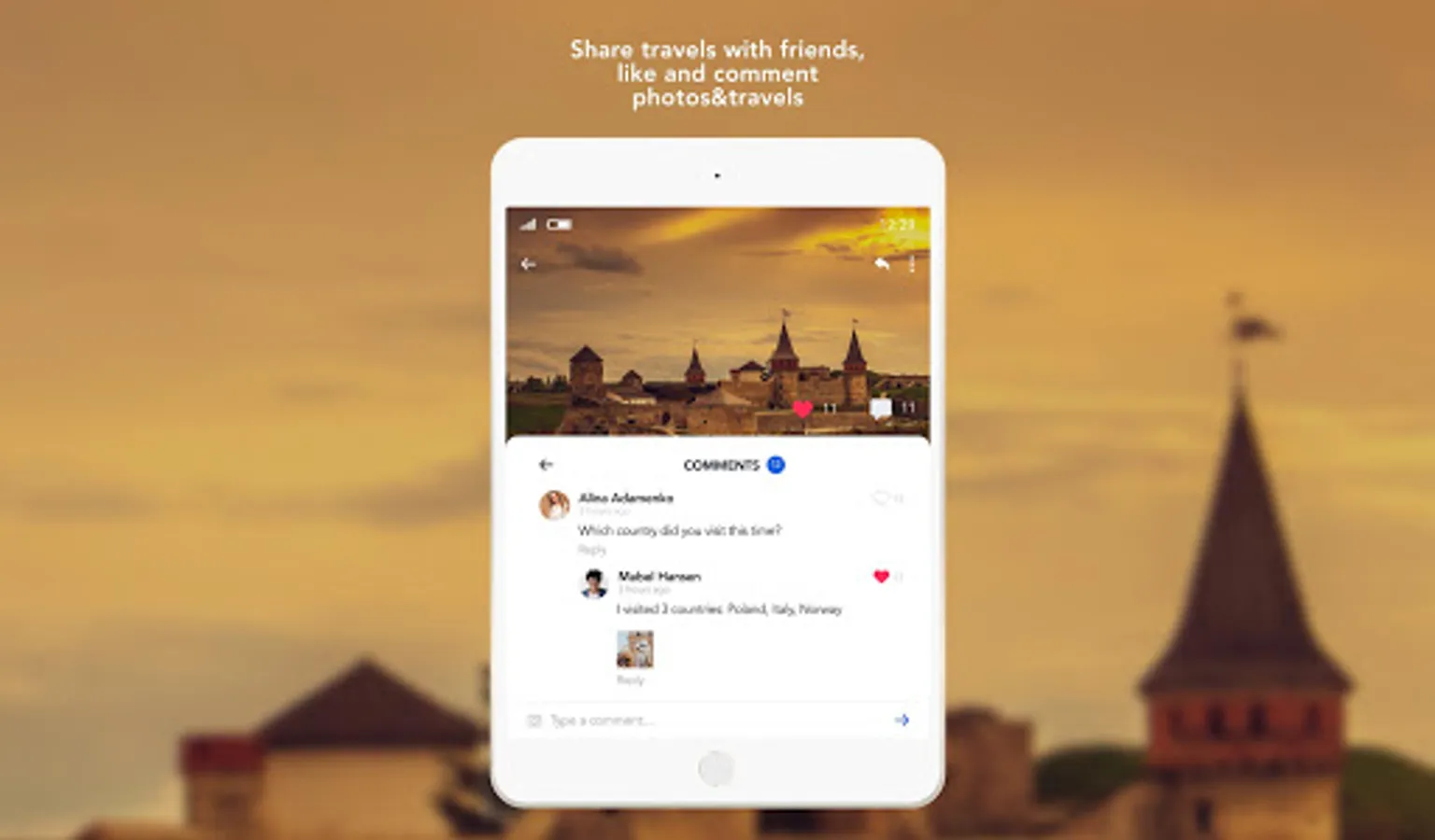 The app allows you to easily save your travel memories. We can help you quick&simple create travel albums in order by location and time, comment them, share, get feedback and discover the world with friends, travel-bloggers&photographers.