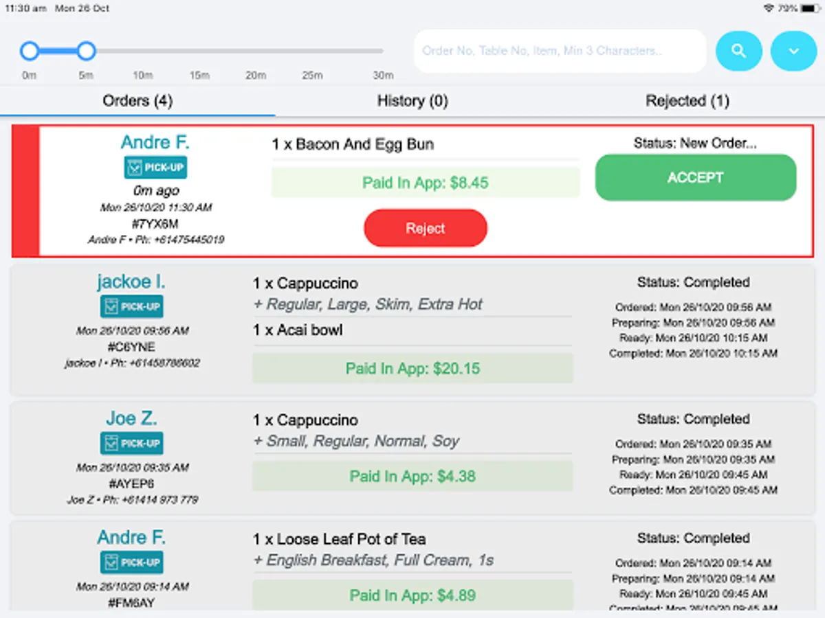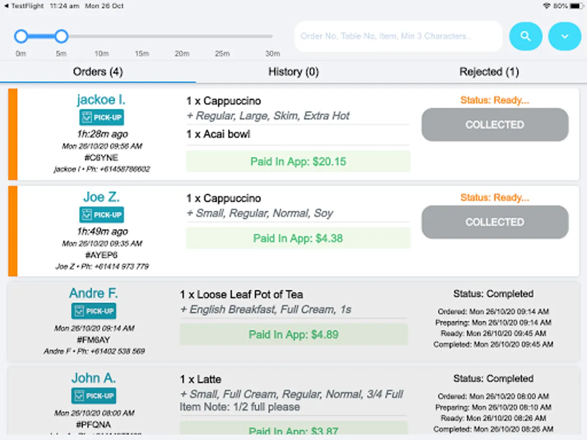 Venues can use this dashboard app to easily accept contactless orders from myy app, review the items ordered and notify users when the order is ready to pick-up or served to dine-in tables. Venues can also reject orders and set waiting times.