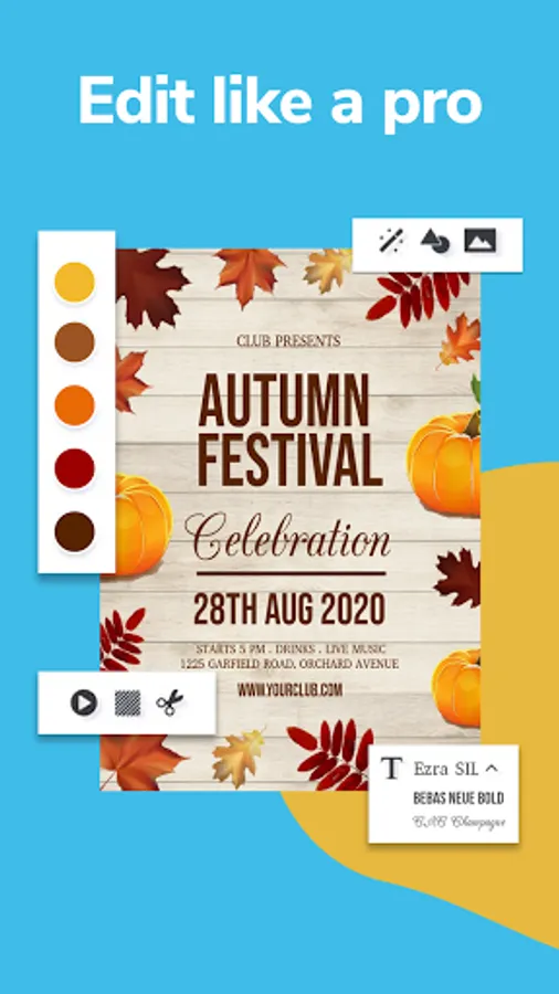 ★ Change Font: Say it with feeling - Our large font library ensures that you’ll get the right font style to amplify the impact of your social media posts, invites, and posters.
