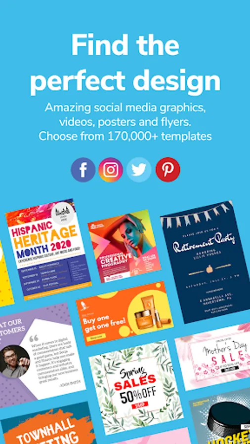 ★ Captivating Images: Let your design say it all using our full-featured visual photo and video editor. Select from our premium stock photo and video library--or upload your own to include on your posters and social media posts.