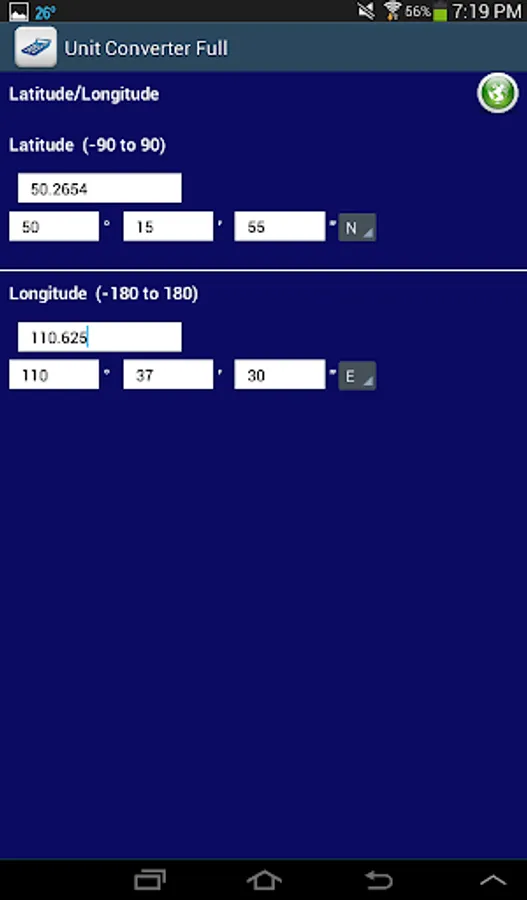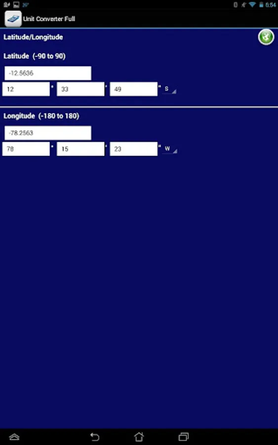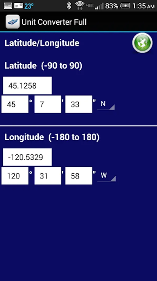 *New - now includes a conversion screen for latitude and longitude coordinates. Now can convert between decimal and degrees/minutes/seconds formats.