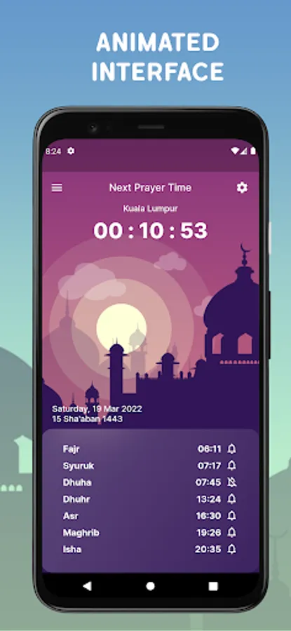 - Immerse yourself in a visually stunning and interactive interface that changes with each prayer time.