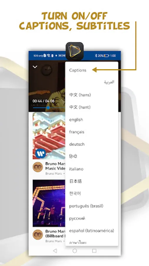 - Change playback speed (0.5f, 0.75f, 1.0f, 1.25f, 1.5f, 1.75f, 2.0f)