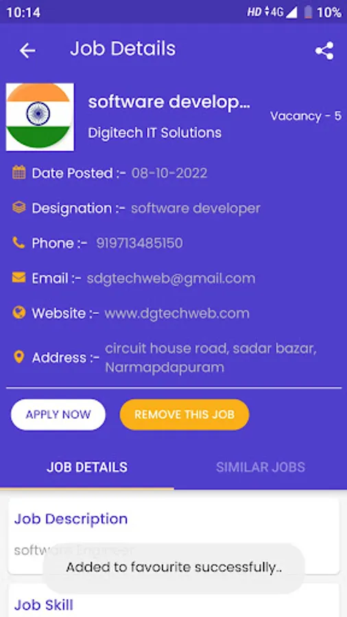 Private Sector job app give info about jobs from private sector from all over in Narmadapuram.