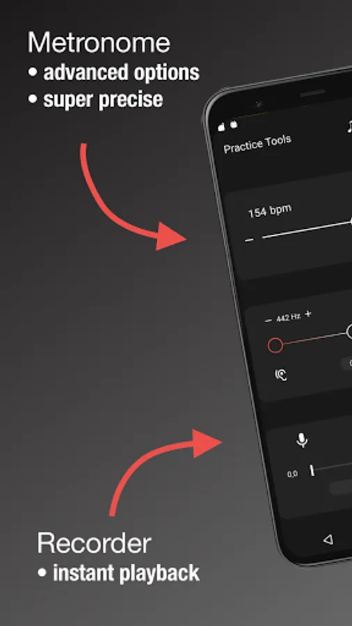 No more switching between Metronome, Recorder or Tuner App! Revolutionize your practice and benefit from the advantages of using Practice Tools.