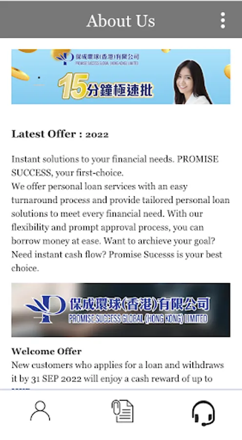 We offer personal loan services with an easy turnaround process and provide tailored personal loan solutions to meet every financial need. With our flexibility and prompt approval process, you can borrow money at ease. Want to archieve your goal? Need instant cash flow? Promise Sucesss is your best choice.
