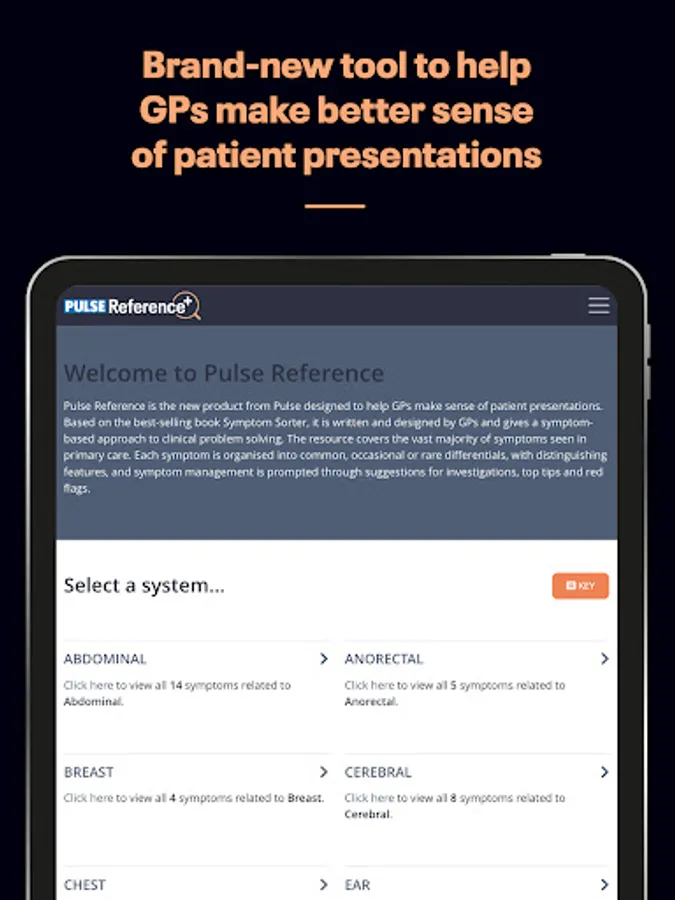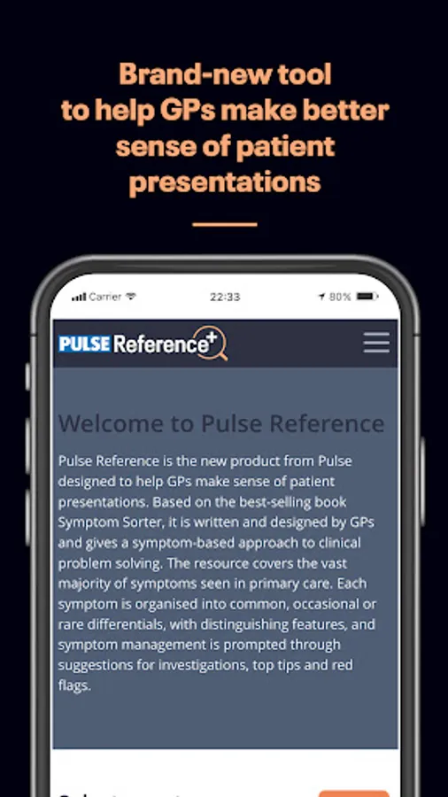 Designed by GPs to help doctors diagnose patients with a multitude of symptoms from the common to the vague and occasionally obscure. With Pulse Reference, GPs can search for symptoms, identify common, occasional and rare diagnoses, spot red flags, and identify possible investigations.