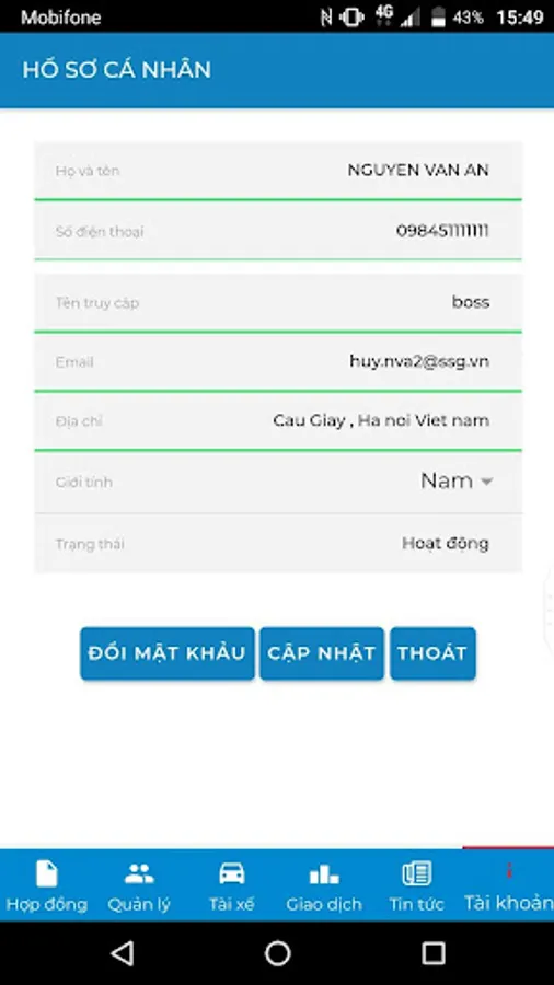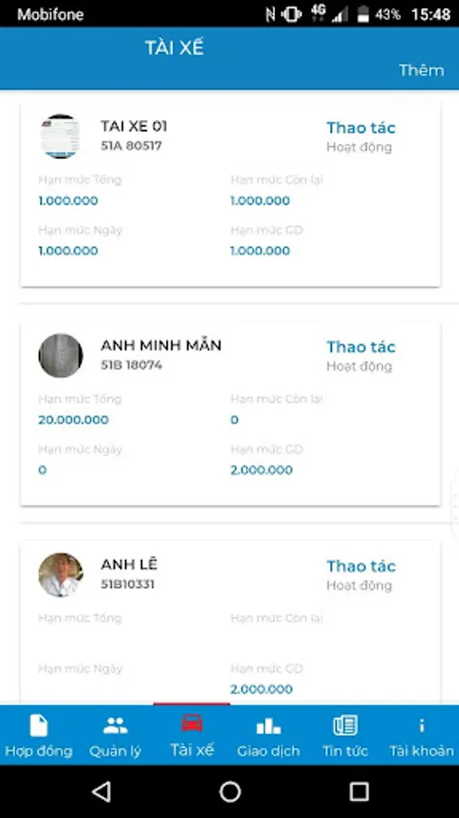 - The owner / manager uses the application to manage and manage driver related information (limit level, lock / unlock account, photo approval ...)