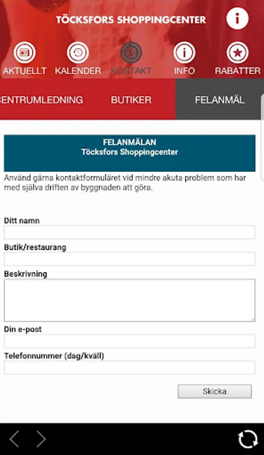 Internal application to all employees working and operating in Töcksfors Shopping Centre.