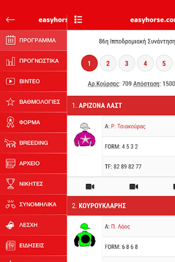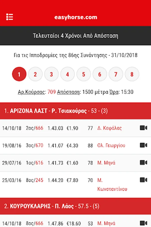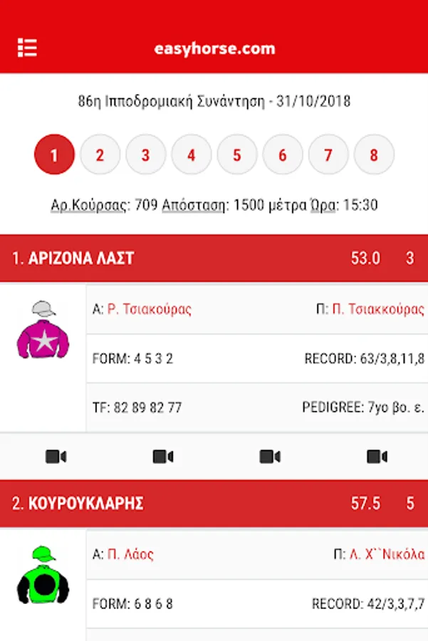 The easyhorse app, presents detailed racecard cards, colored uniforms, form, Timeform, results, time, dividends on each horse's last race, the latest distance races and videos of each competing horse in a new pioneering environment for better navigation.