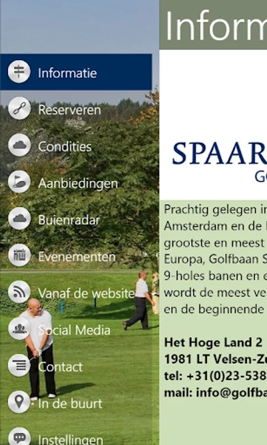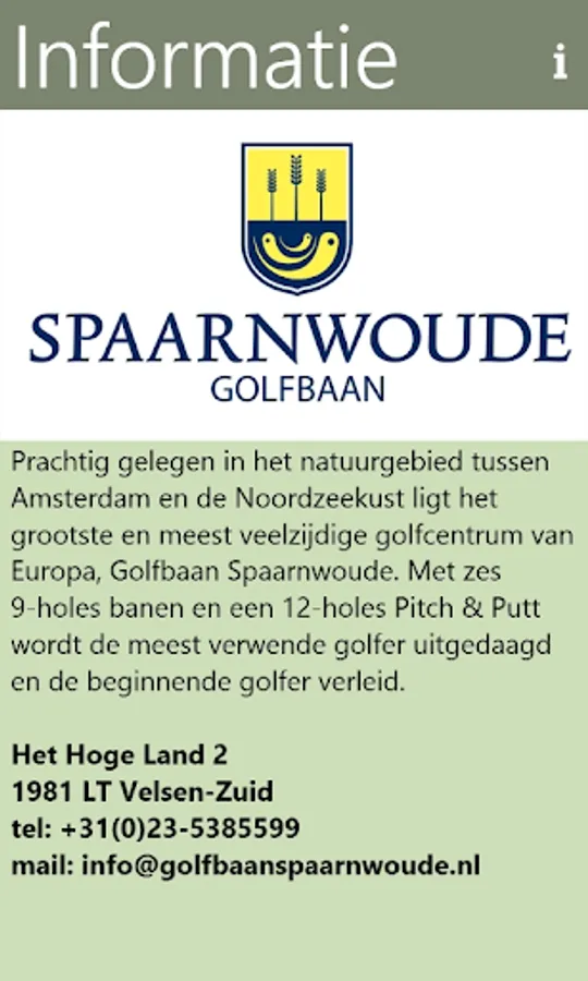 Beautifully situated in the nature reserve between Amsterdam and the North Sea coast lies the largest and most versatile golf center in Europe, Golfbaan Spaarnwoude. With six 9-hole courses and a 12-hole Pitch & Putt, the most spoiled golfer is challenged and the novice golfer is tempted.