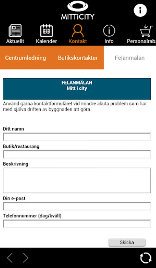Internal application of all employees who work and operate at the Mitt i City, the app is protected by passwords which are distributed by the center line.