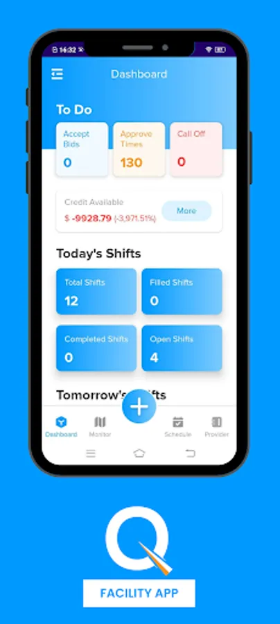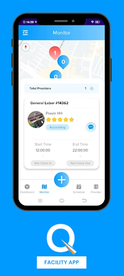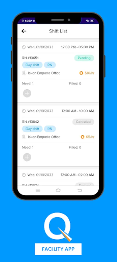 Posting shifts, selecting providers, monitoring the running shifts, approving timesheets, and communicating with the provider, all from your fingertip through the Quinable Facility App.