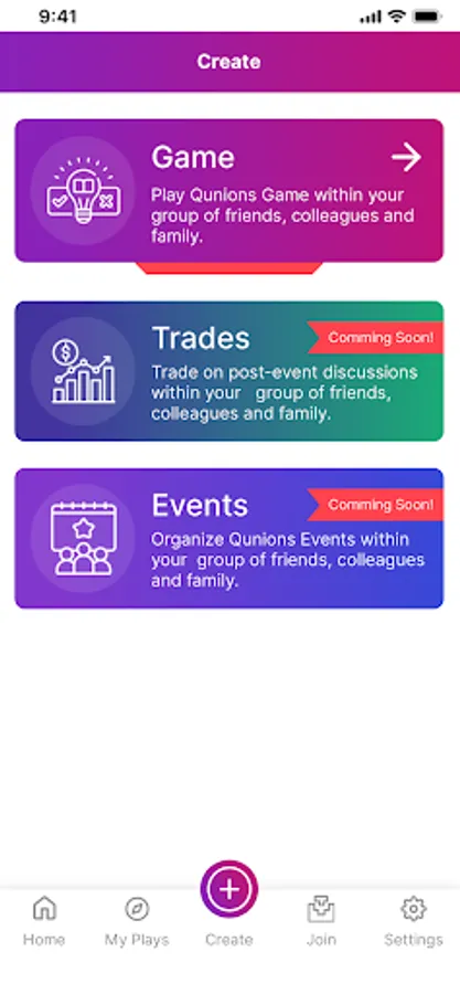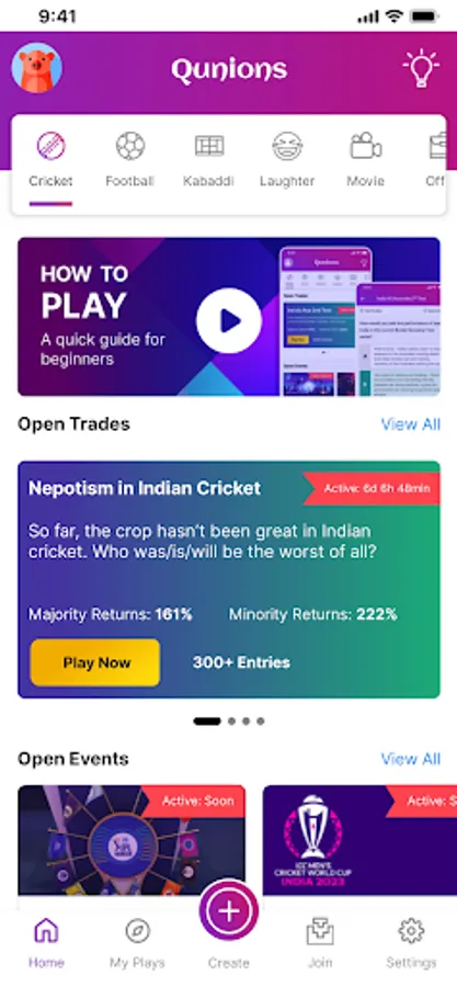 Qunions is a Questions and Opinions platform, where there are only opinions to questions – no factual one correct answer! Choose an opinion that you think/analyze would be most popular or most unique in your group or in an open event. There are 3 different Qunions format – Trades, Events and Game. For different Qunions formats, strategize as per the game’s winning objective and read others psychology to win.