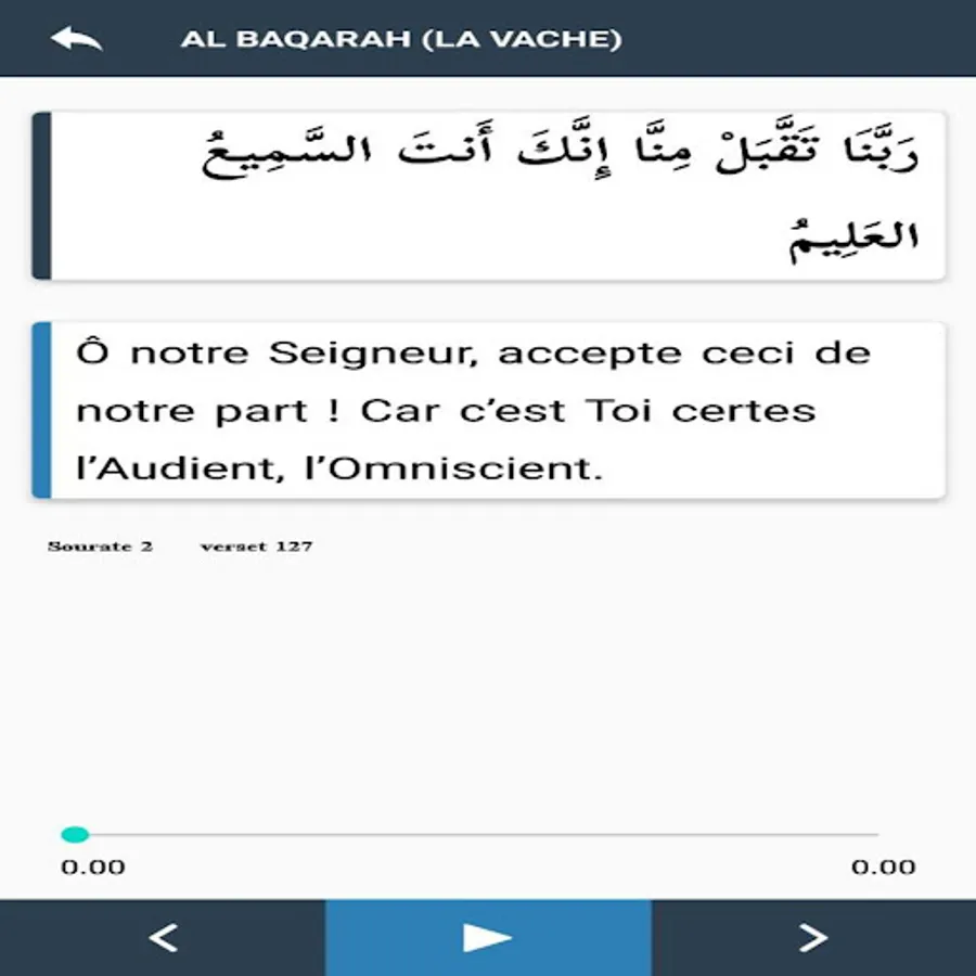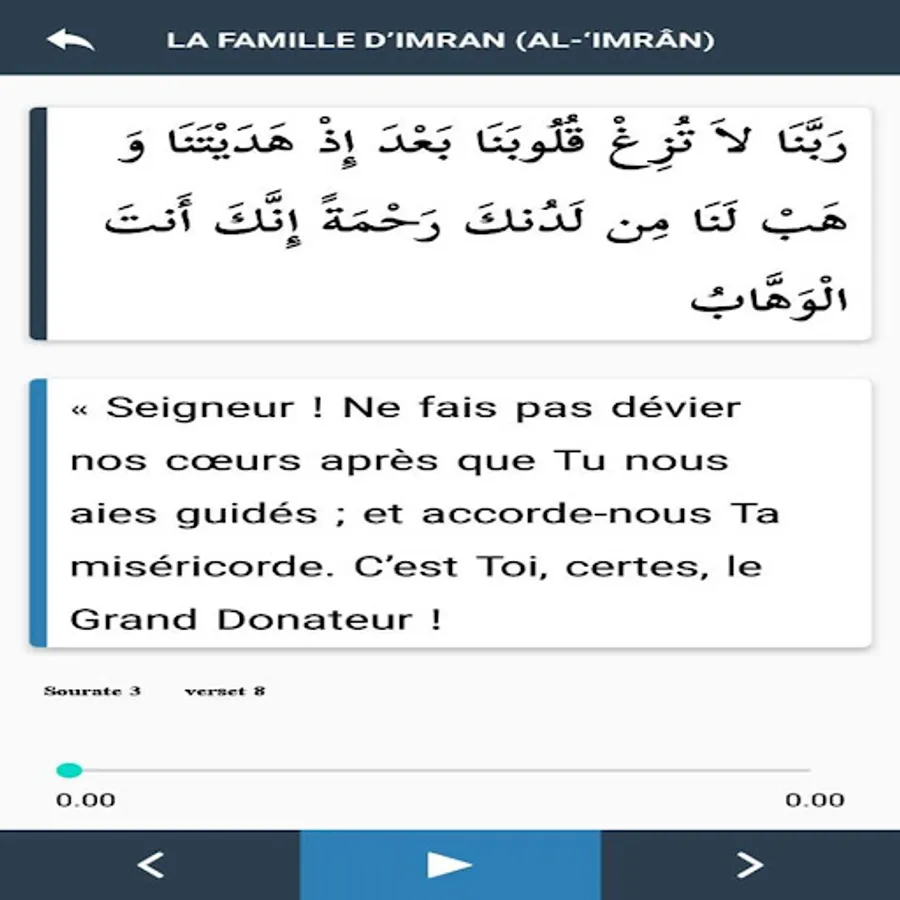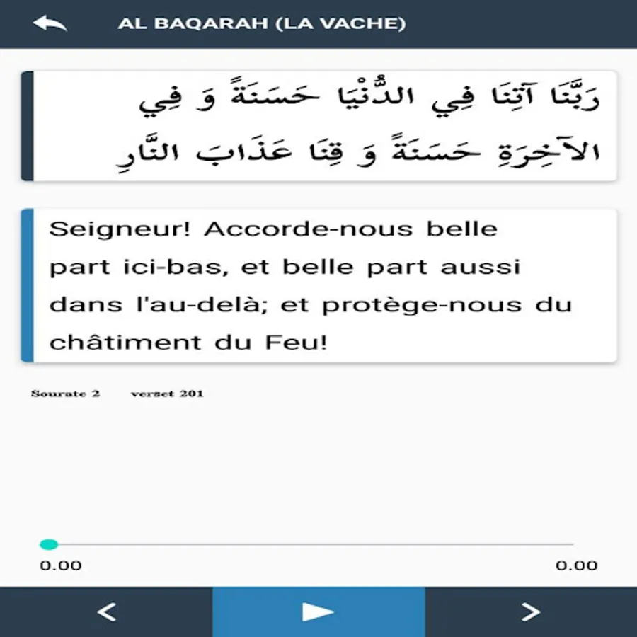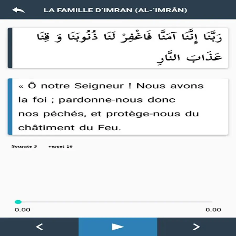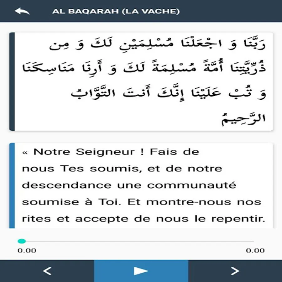 The application is in French and Arabic Rabbana with audio.