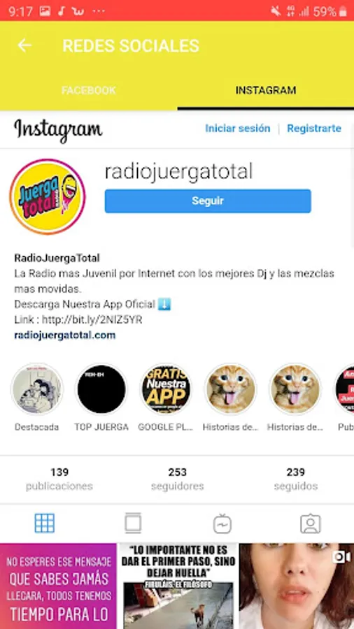 • Contact the Radio through the main social networks and access their latest news.