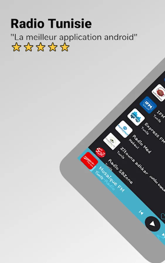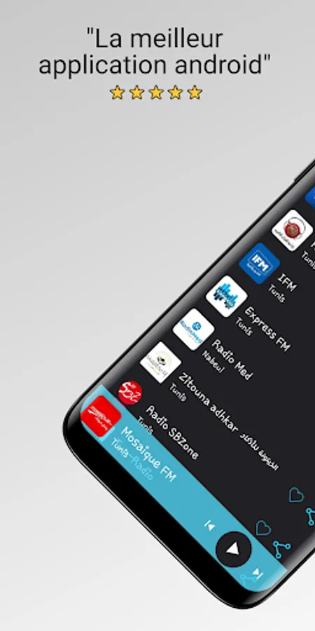 The ergonomics of Radio Tunisie have been designed to be the simplest and fastest radio application.