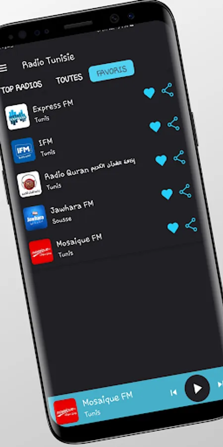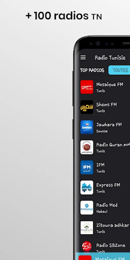 The Radio Tunisie application allows you to listen to all Tunisian FM radios and online radios for free.