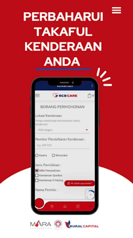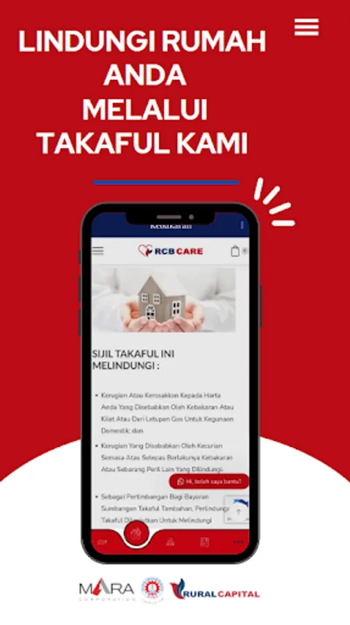 Rural Capital Bhd (RCB) is the Corporate Agent to leading Takaful Operators in Malaysia offering Takaful Protection on General and Family products. RCB is also a Takaful service provider to Majlis Amanah Rakyat (MARA) where this appointment is an initiative of MARA in guaranteeing, protecting or preserving the MARA Community in addition to education financing and the development of successful entrepreneurs.
