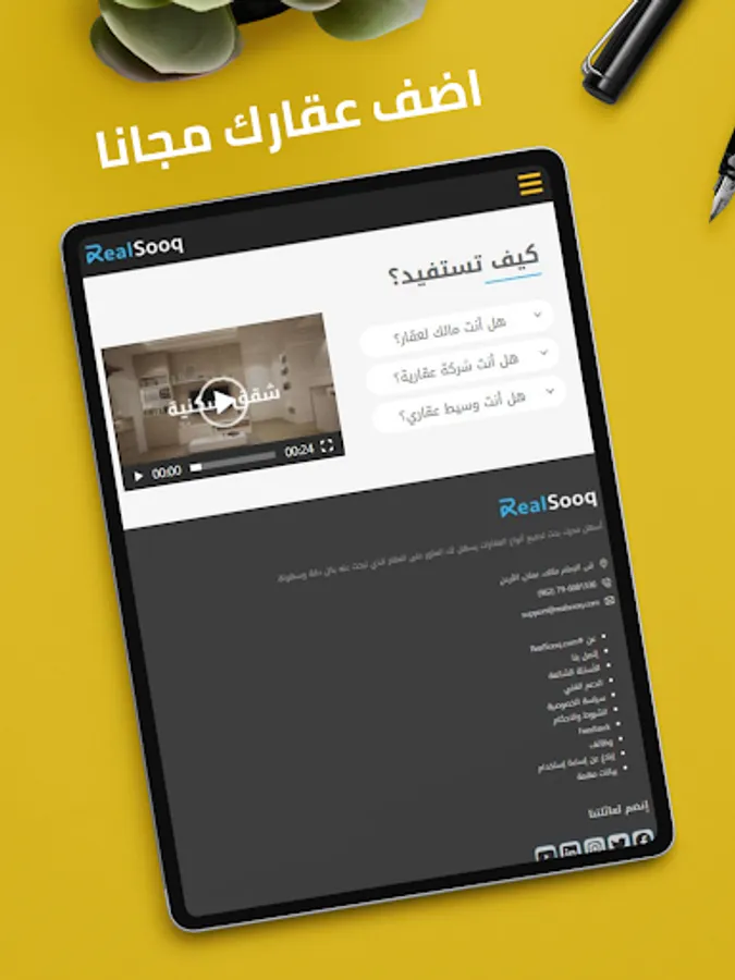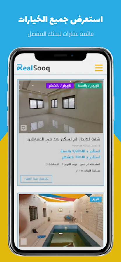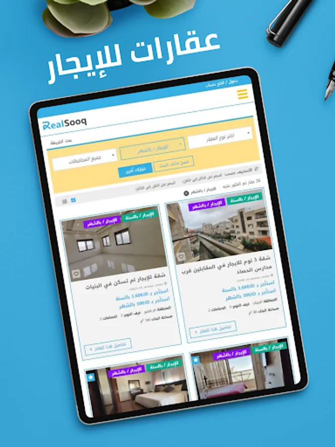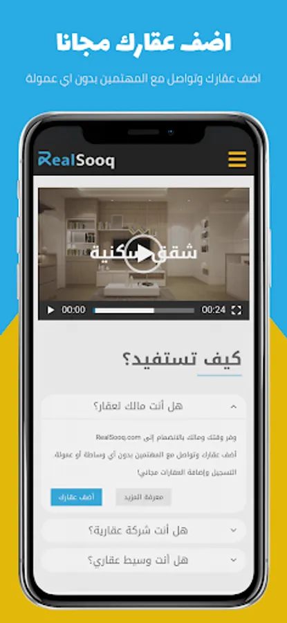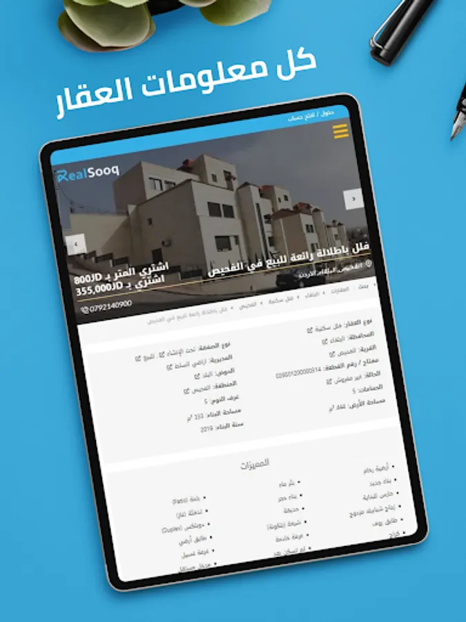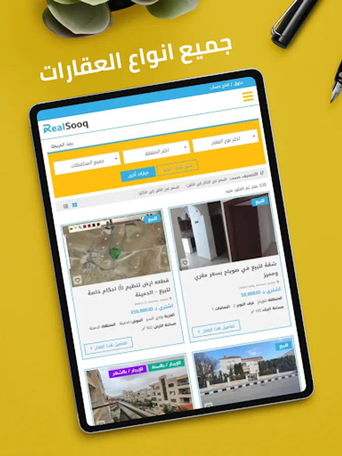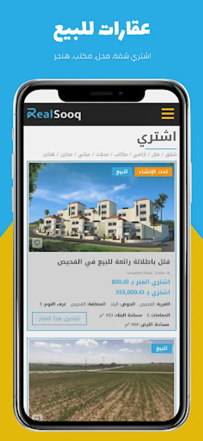 افضل تطبيق إعلانات مبوبة مجانية للعقارات، يقدم أفضل وأسرع الطرق لبيع وشراء جميع انواع العقارات من شقق / فلل / أراضي / مكاتب / محلات / مباني / مخازن / هناجر / مستودعات / مزارع وغير ذلك الكثير في بلدك.