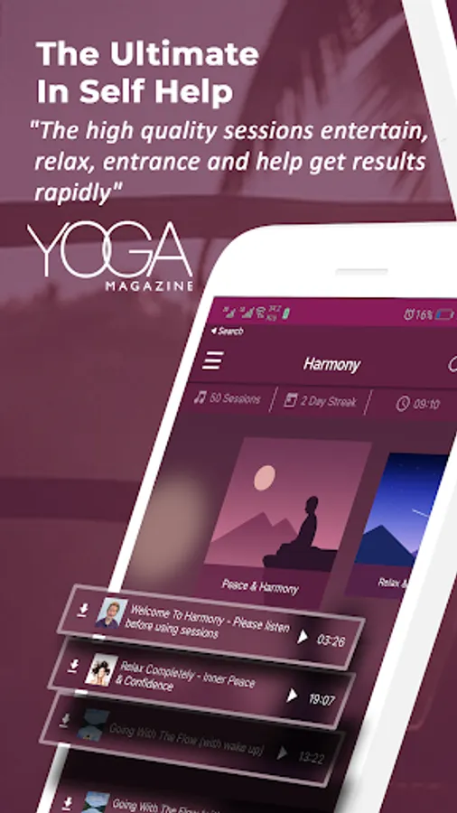 Harmony contains 3 completely free hypnosis meditations and you can gain full access to all hypnosis sessions with our free 7 day trial. Listen to one of the self hypnosis sessions every day for the next week and notice the difference in how good you feel.