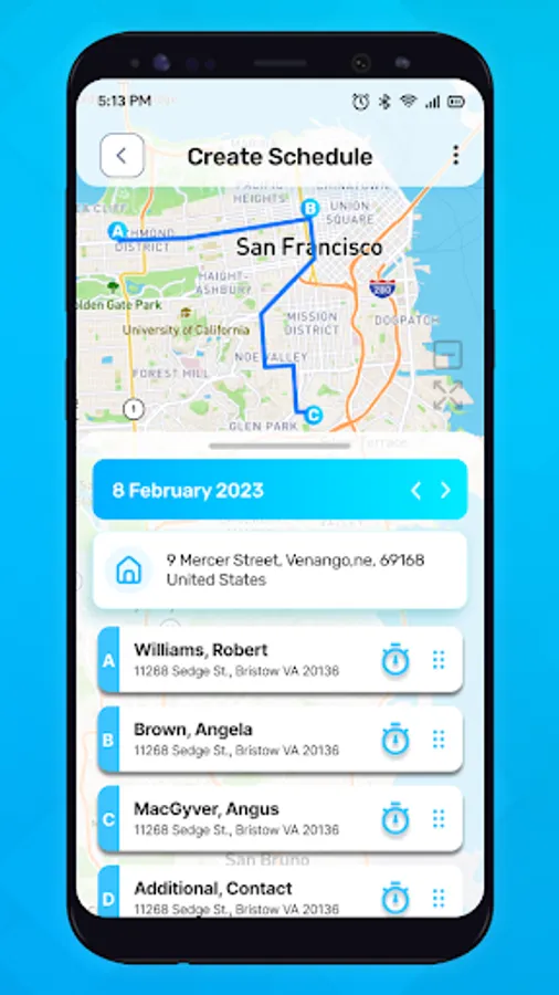 Rendezvous Mobile App is designed to help contractors and full-time individuals set up home visit appointments with ease. The app focuses on saving you time so that you can concentrate on other important tasks. It increases your productivity and efficiency in executing day-to-day tasks, and allows you to organize and schedule appointments on a daily or weekly basis. Rendezvous is your one-stop appointment keeper, scheduler, and assistant. It enables you to set up appointments preemptively according to your requirements and navigate your planned trips without worrying about who to visit next.