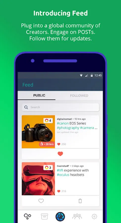 Socialize with the community. Follow popular content creators and interact with them. Share, engage and learn from the community.