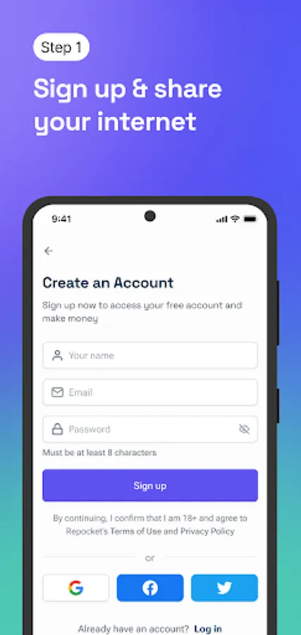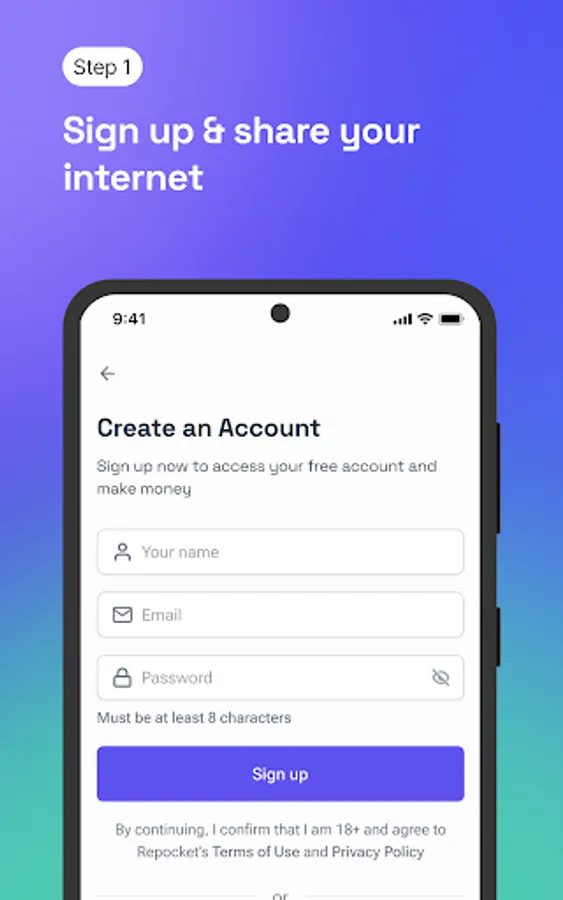 You can start making money in less than 5 minutes. Simply install Repocket on any device and connect it to the internet. Once the app is installed, your unused internet will be shared in the background. You can pause or disable it at any time.