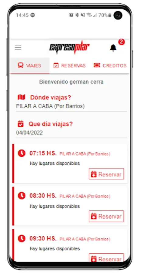 With the new Expreso Pilar application you can register and view the routes and travel schedules that you most want.