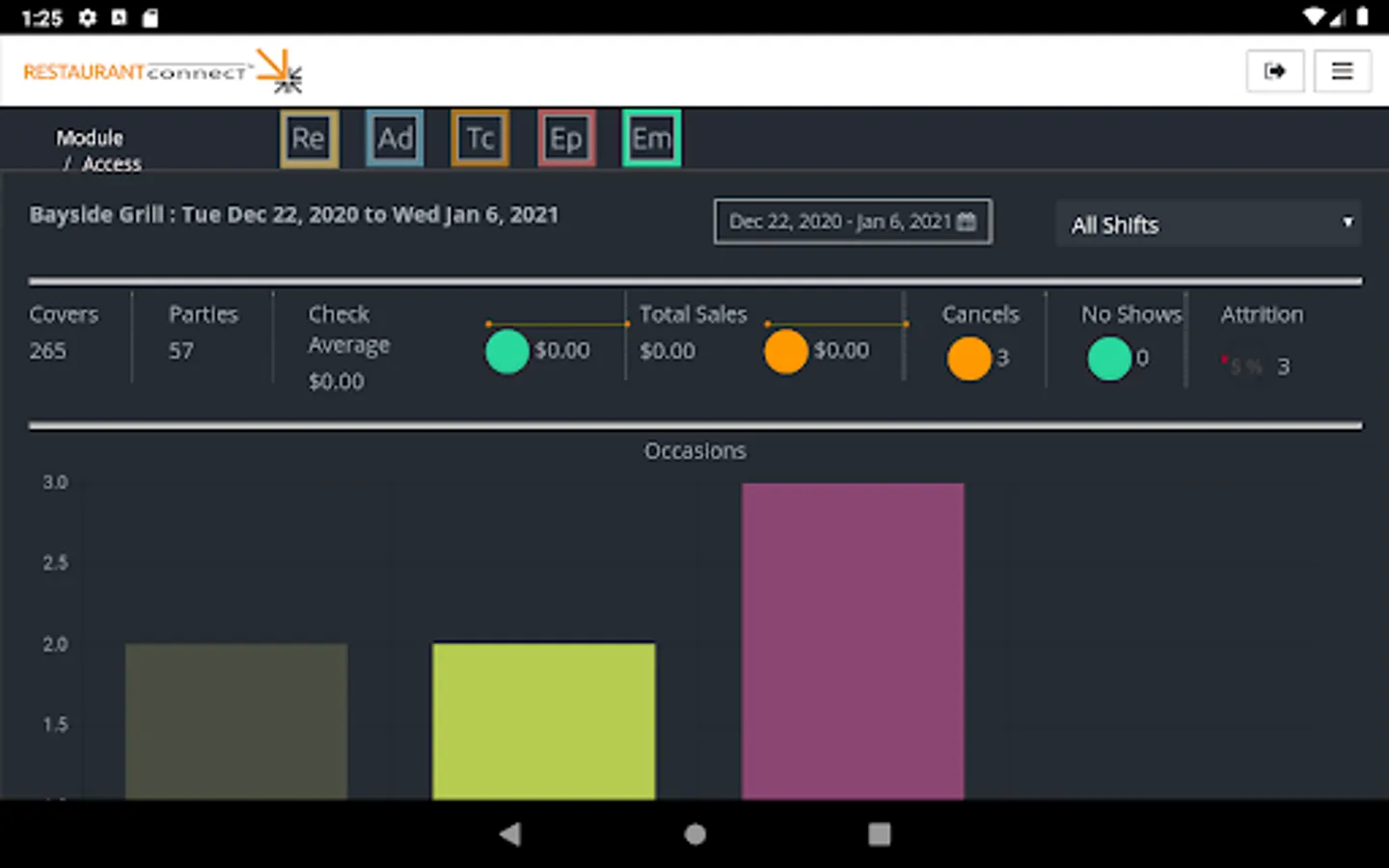 With RestaurantConnect, manage your restaurant's reservations, dining room, personalized customer dining profiles, waiting list and more!