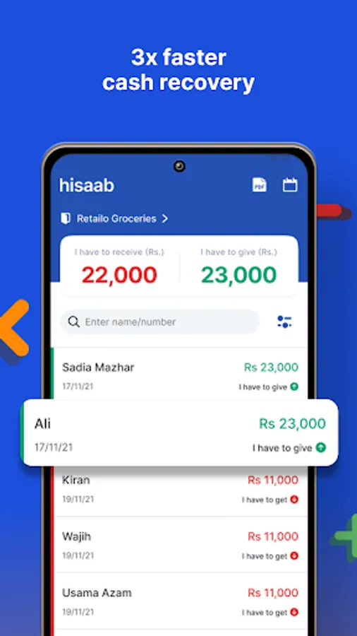 Using paper ledgers and making manual entries are too much hassle. Throw out your stacks of registers and go digital with Hisaab! Double your profits and recover your cash 3x faster through your digital ledger.