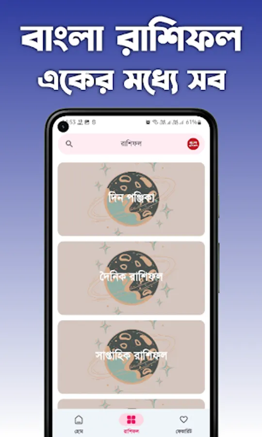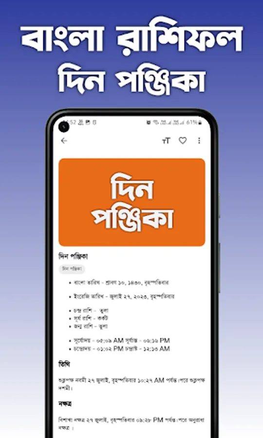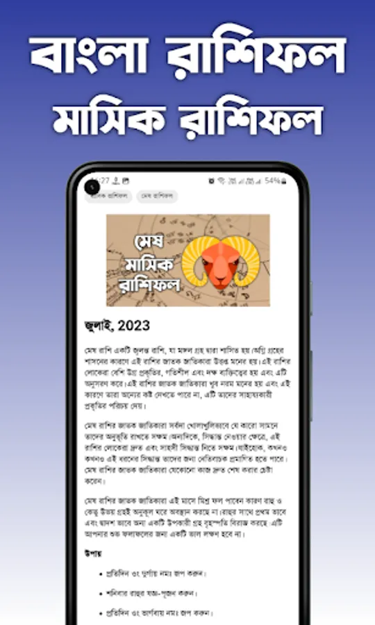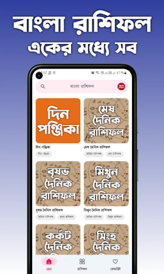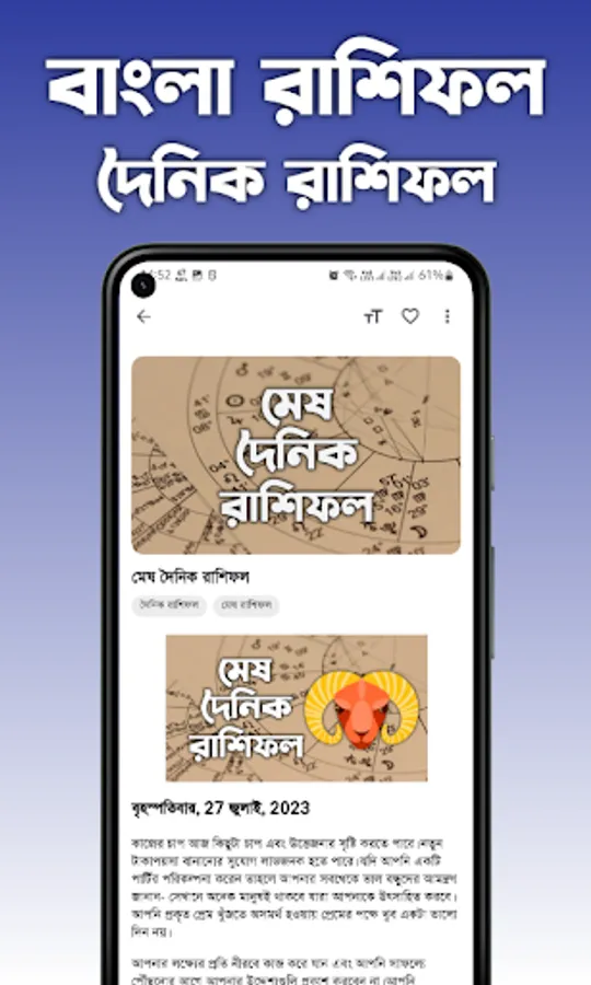 আপনারা এই অ্যাপটির মধ্যে পাবেন ২০২৩ এর - দৈনিক রাশিফল, সাপ্তাহিক রাশিফল, মাসিক রাশিফল, বার্ষিক রাশিফল, বাংলা ক্যালেন্ডার, বাংলা পঞ্জিকা,