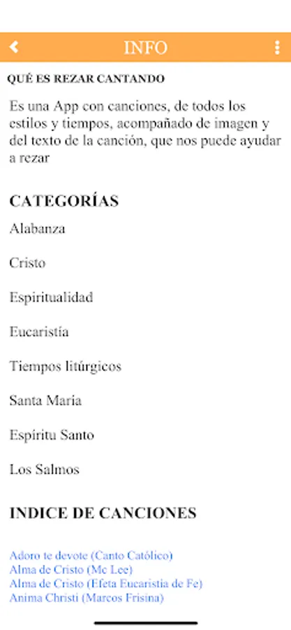 Nuestra App católica te invita a rezar cantando, combinando textos y oraciones sagradas con hermosas melodías. Sumérgete en una experiencia espiritual única mientras entonas himnos y alabanzas a través de diversas canciones. Encuentra consuelo y fortaleza en tu fe, ya sea en casa, en la iglesia, o en cualquier lugar. Explora una extensa colección de textos, músicas y oraciones de la tradición de la Iglesia y eleva tu espíritu. !Descarga nuestra App y disfruta de la "oración cantada" en tu vida diaria!