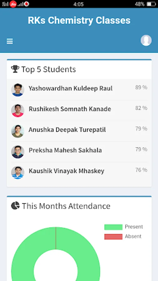 This app can be used to check profile, track daily attendance, evaluate and analyze performance using the test results.