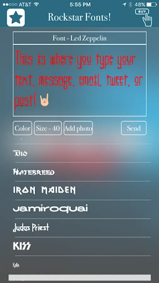 Rockstar Fonts! has the best and coolest HEAVY METAL fonts for GooglePlay. Over 50 fonts from your favorite 80s bands to more contemporary Rockstars. Now you can add text to your photos and share them with your friends and social media. Rockstar Fonts are also compatible with Texting, Facebook, Twitter, WhatsApp, and Email.