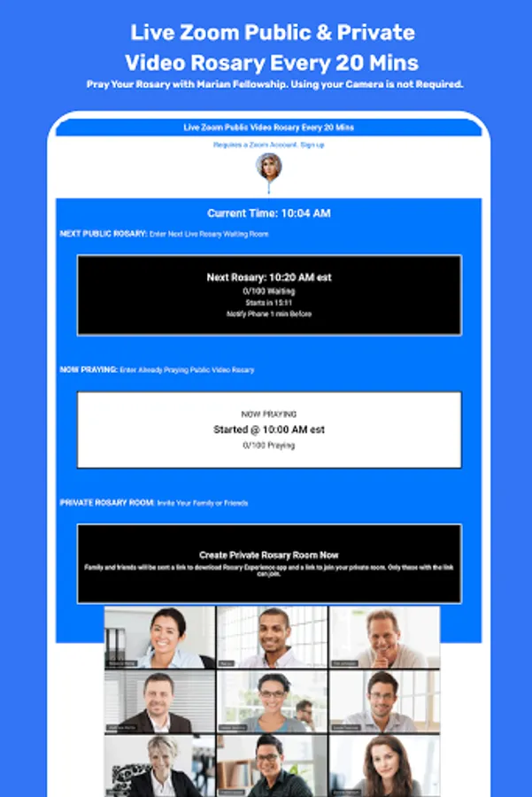 - Live Zoom Rosary Video Praying with other users are available every 20 minutes, 24/7