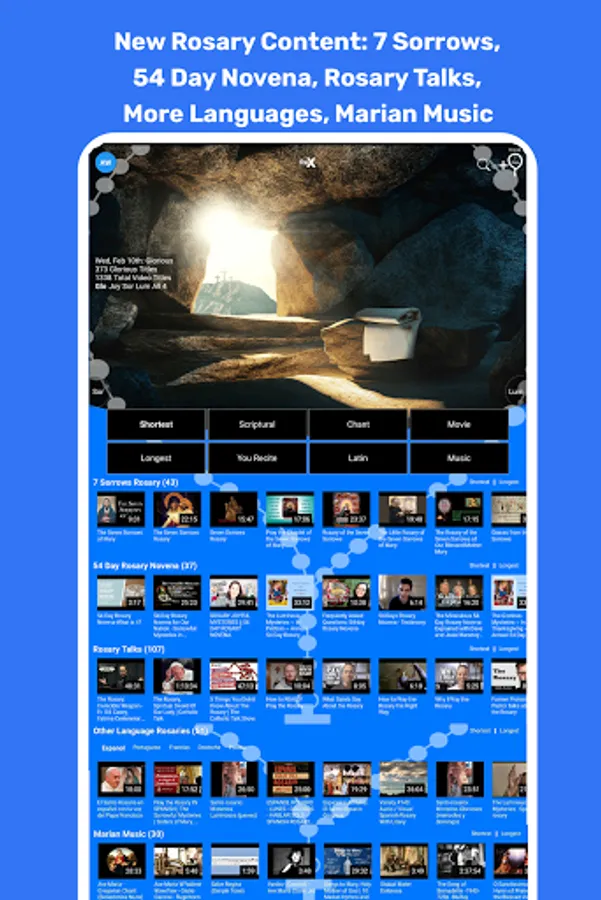 - New Rosary Content: 7 Sorrows Rosary, 54 Day Novena, Rosary Talks, More Languages Rosary, Marian Music etc.