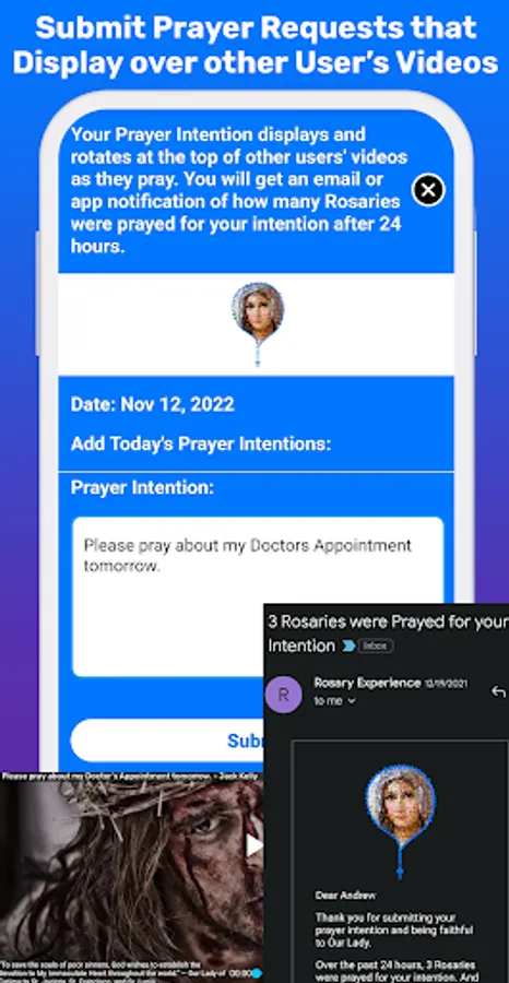 - Create Private Rosary Video Prayer rooms with other Premium Users that you invite- Marian Rosary Quote Inspiration Wall