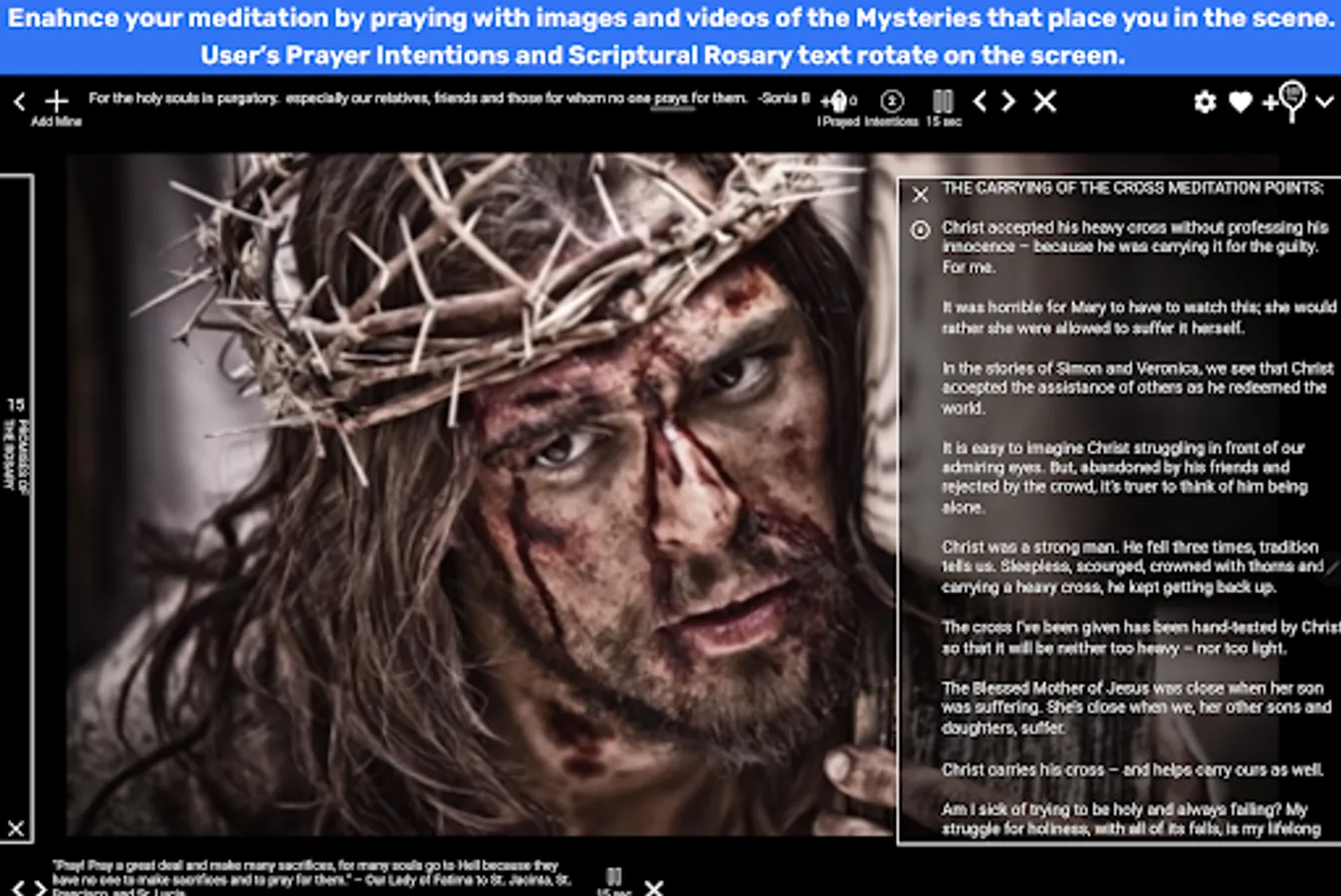 Take your Holy Rosary meditation to a new level by visually immersing your Soul into the Biblical Scenes of the Holy Mysteries that come alive before you as if you are there.