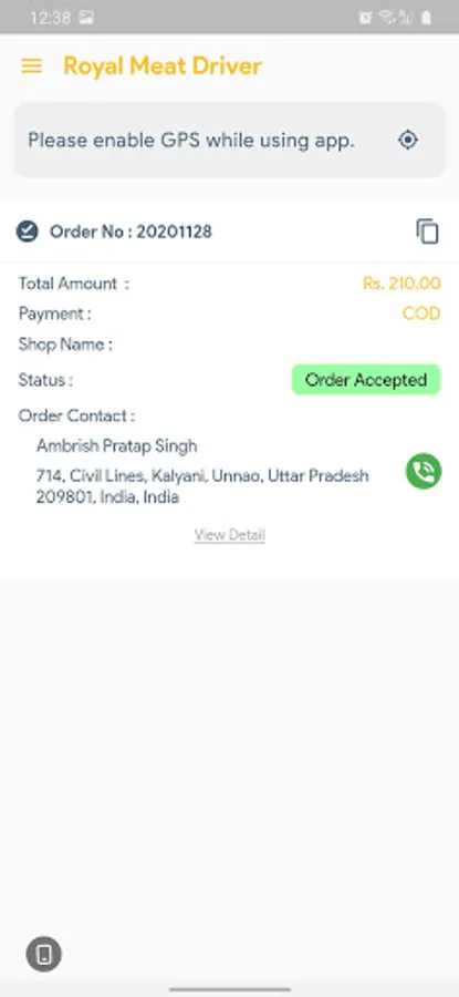 Royal Meat Shop Delivery Boy application is managing the delivery of all the orders received by my royal meat shop. Royal Meat Shops Delivery Boy will log in to this application using their own credentials and will get the list of orders assigned to them by the admin of Royal Meat Shop. Delivery Boy will get all information related to Order with Location. After delivering the order Delivery boy can mark the order deliver and complete the process.