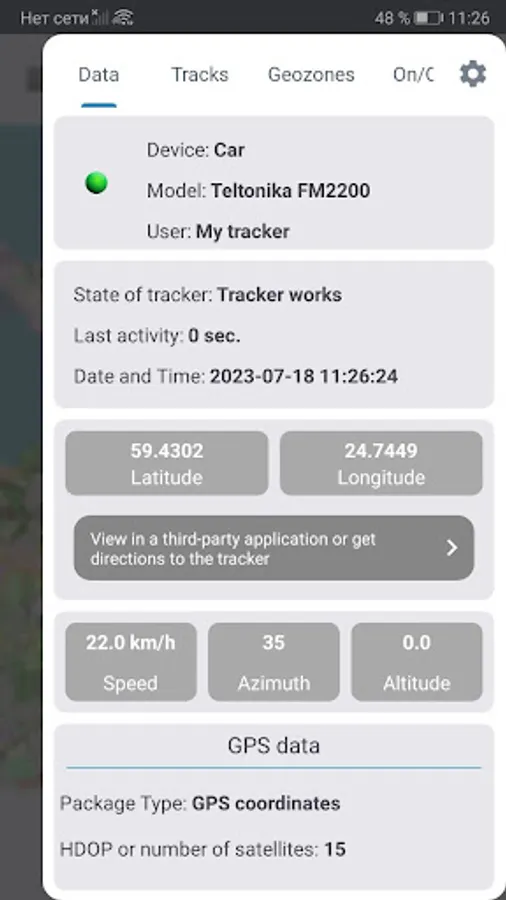 * If your account already has connected trackers (for example, through the platform website), then you will immediately see them on the map