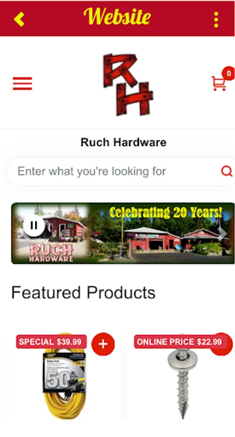 An app designed to keep Ruch Hardware customers informed about sales and events at Ruch Hardware. It also includes a listing of other local businesses and other information about the Applegate Valley.
