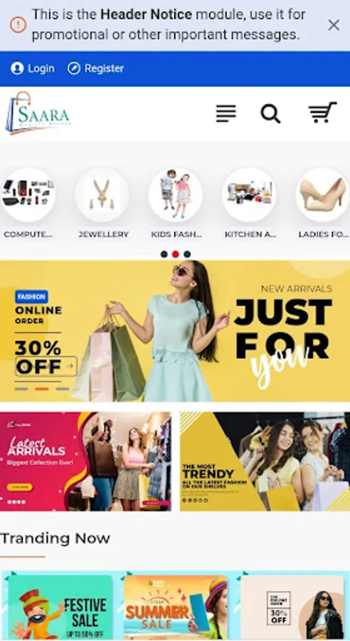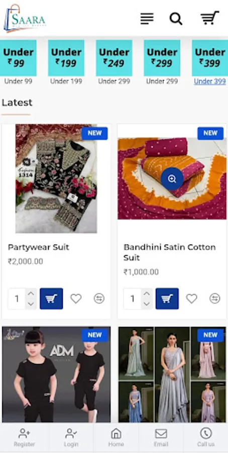 "Saara Collections is established in 2013 and it provides a wide range of dress material whether it is of partywear or casual,cotton or georgette,Bandhej suit dress material,Sarees,Bedsheets,Kitchenware,Houseware,Crockery,Modern Kitchen Accesssories and many more products characterized by quality and creativity.Saara Collections's products available for all age customers.We have a product range for everyone whether a kid or teenager,boy or a girl,men or a women.In short a perfect shopping destination for all your needs.We believe in delivering quality products at competitive prices.The company currently has showroom in Delhi and soon we will be available in pan India."