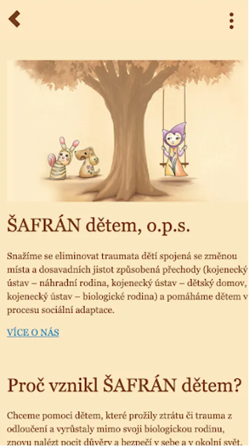 Snažíme se eliminovat traumata dětí spojená se změnou místa a dosavadních jistot způsobená přechody (kojenecký ústav – náhradní rodina, kojenecký ústav – dětský domov, kojenecký ústav – biologické rodina) a pomáháme dětem v procesu sociální adaptace.
