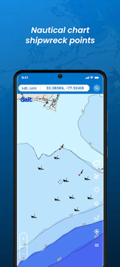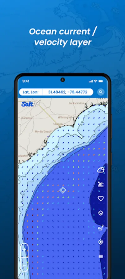 The developers at SaltWeather have created a custom basemap that gives everything you need without all of the clutters included in the NOAA navigation map. Our basemap provides ocean contours depths categorized by color making it easier to view depth changes. Our map is then topped off with detailed contours lines showing the depths. We made it easy to find the 20 and 30 fathom lines!